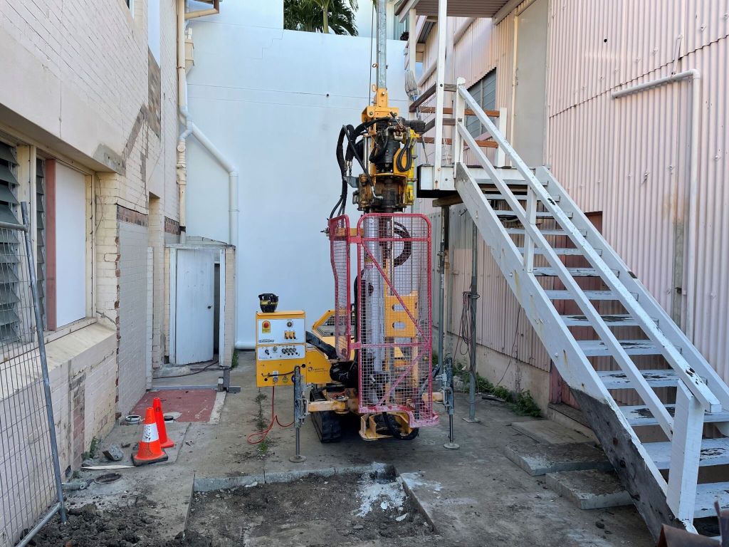 Dealing with tight access areas can be hard. At Noondust we work with mini loaders and tracks with our drills to allow maneuverability in small places.
